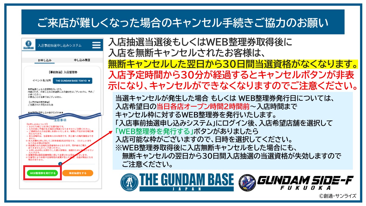 【入店事前抽選/WEB整理券】キャンセルのお願いと無断キャンセルに対する制限について