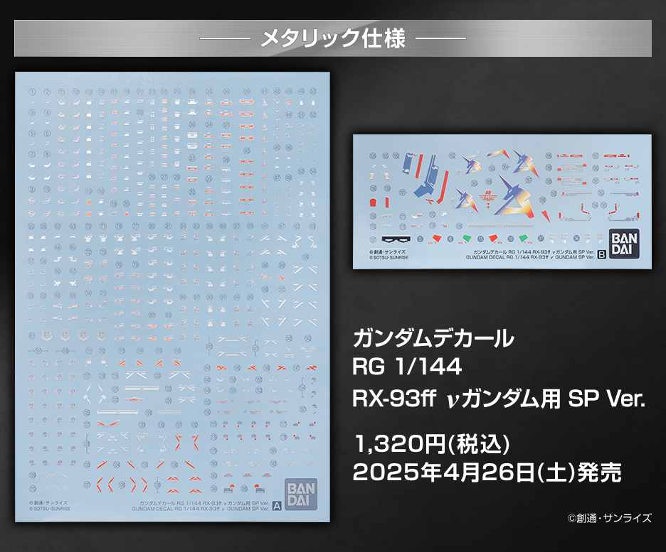 「RG 1/144 RX-93ff νガンダム」専用の水転写式メタリックガンダムデカールが登場!