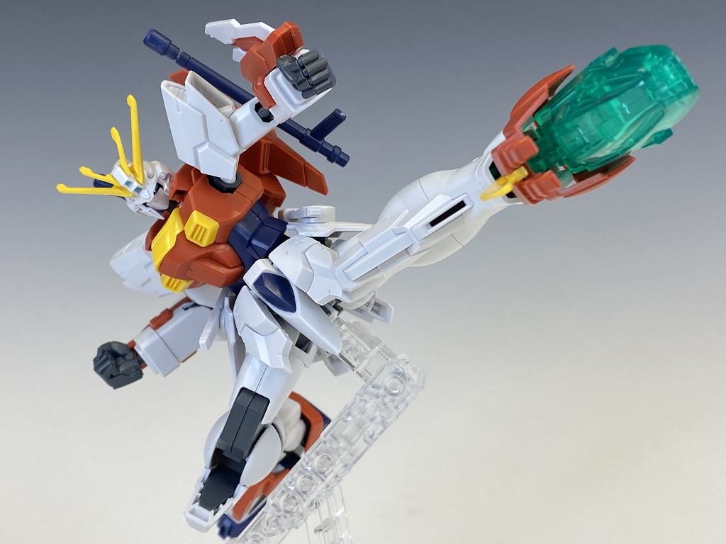 エメラルドグリーンに輝く足技をクリアグリーンの足パーツと交換することで再現。