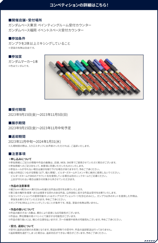 ※ガンダムベース東京・福岡、ガンダムベースサテライト名古屋・京都・仙台、GUNDAM SIDE-Fでは店舗によりまして入店制限を行っている日程がございます。