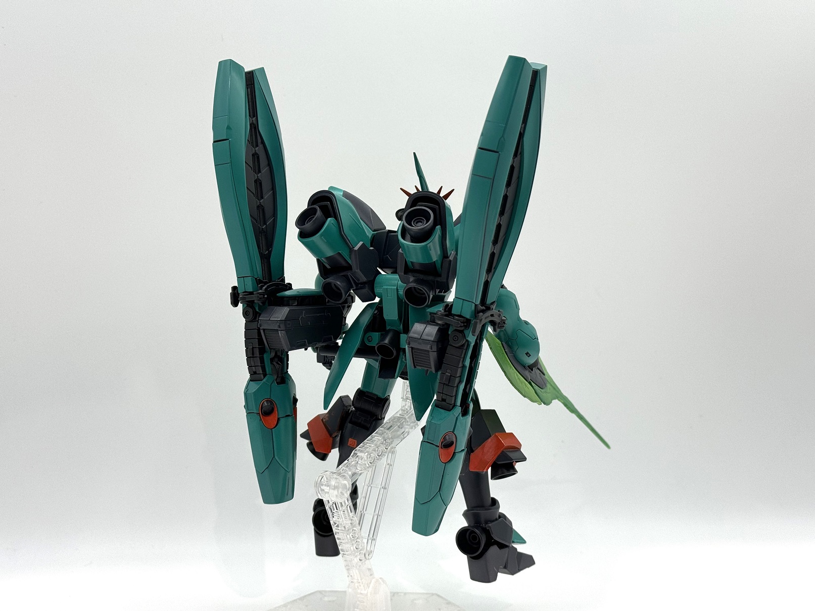 腰部の位置に接続することにより、ダブル・ホーン・ファンネル装備時のバランスを調整しました。