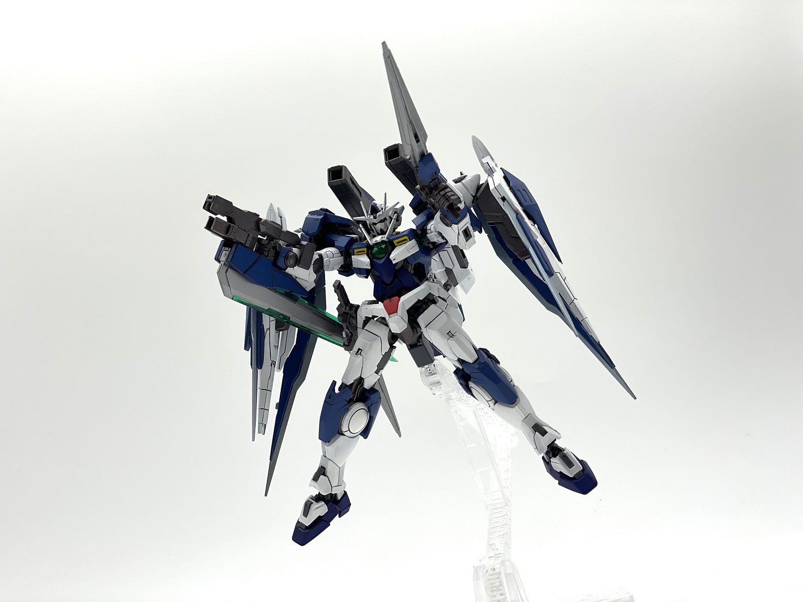 『RG 1/144 ダブルオーライザー』と『RG 1/144 ダブルオークアンタ』をミキシングして作成しました。