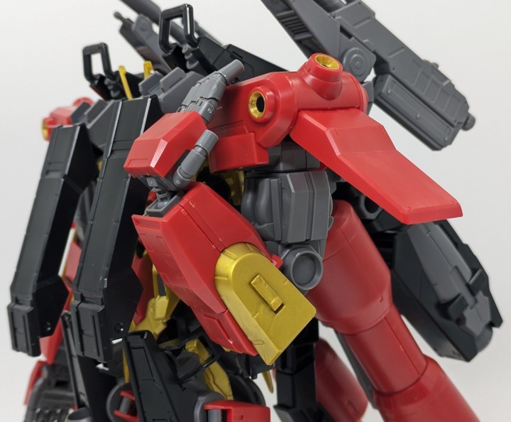 肩部の滑空砲用のジョイントパーツを背部に取り付け、最後に滑空砲を取り付けます。