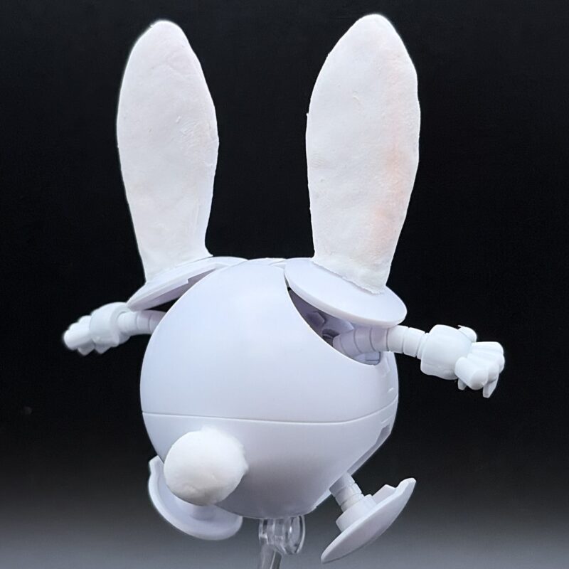 大きな耳と尻尾は100円均一ショップ等で手に入れることができる、紙ねんどでを使用しています。