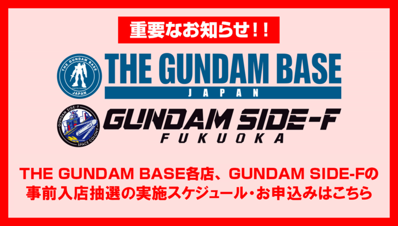 THE GUNDAM BASE各店の入店における事前抽選実施の詳細は下記画像のリンクをご確認ください。
