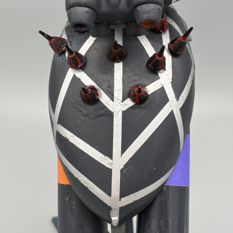全体はダークグレーで塗り、各所にパープルやオレンジを入れてよりハロウィンらしさのある作品になっています。