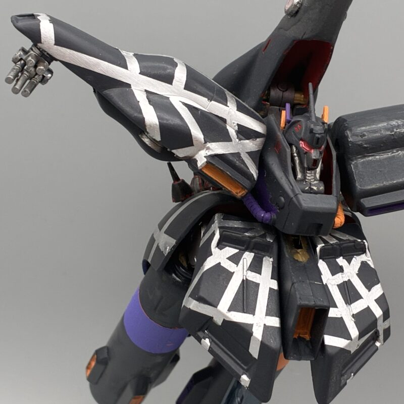 スカートアーマーやショルダーアーマーはシルバーを使って蜘蛛の網の模様をイメージして塗装しました。