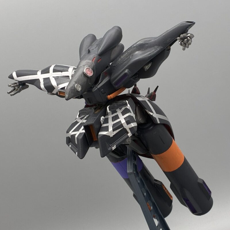特徴の大きな羽や各パーツには、下地塗装後にウエットティッシュを被せて塗装する手法を使用しています。
