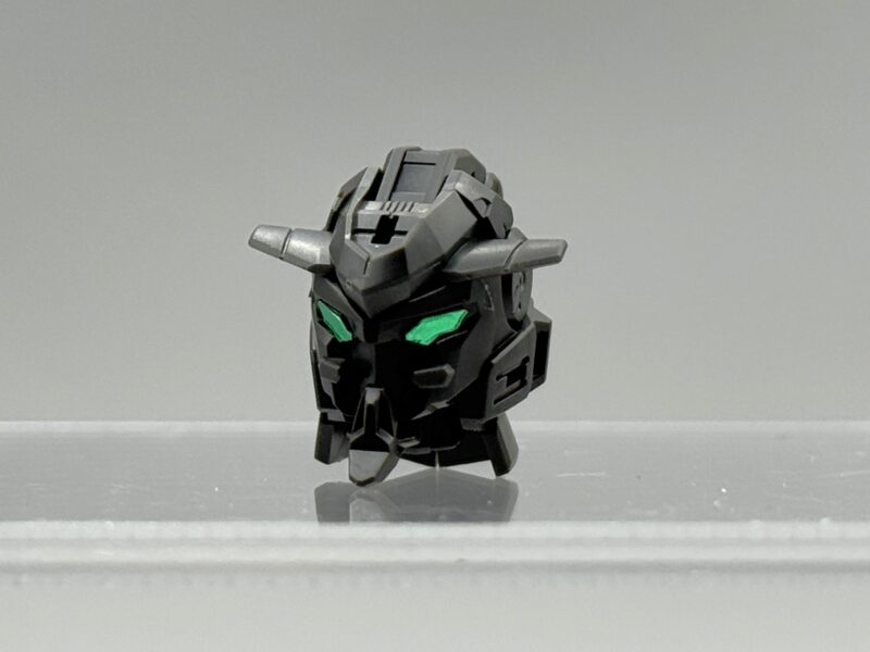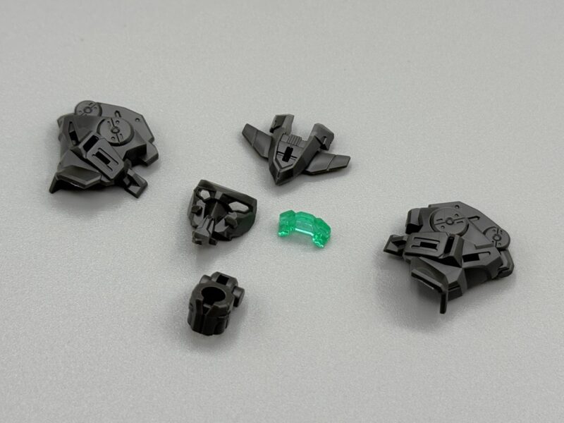 ひざ装甲のエンブレムはクリアグリーン成型のパーツで構成されており、内部に付属のホイルシールを採用し、輝きを表現しています。