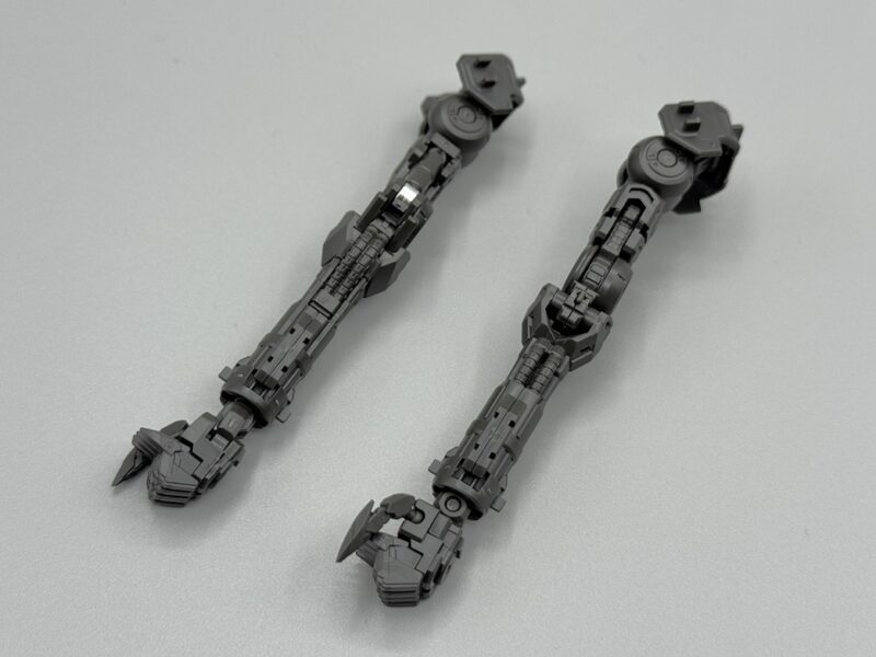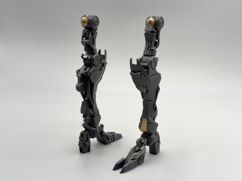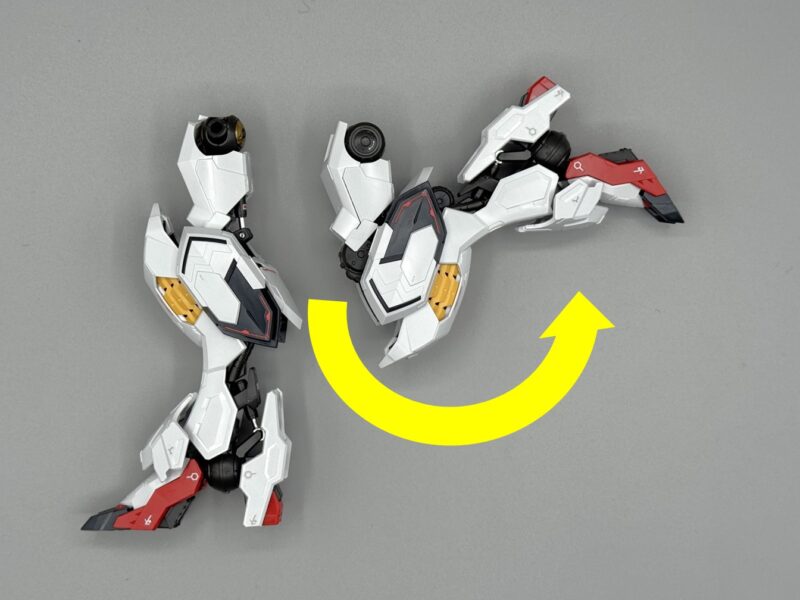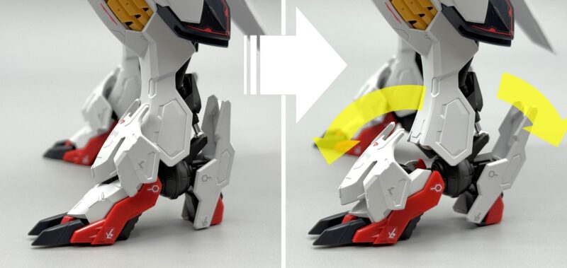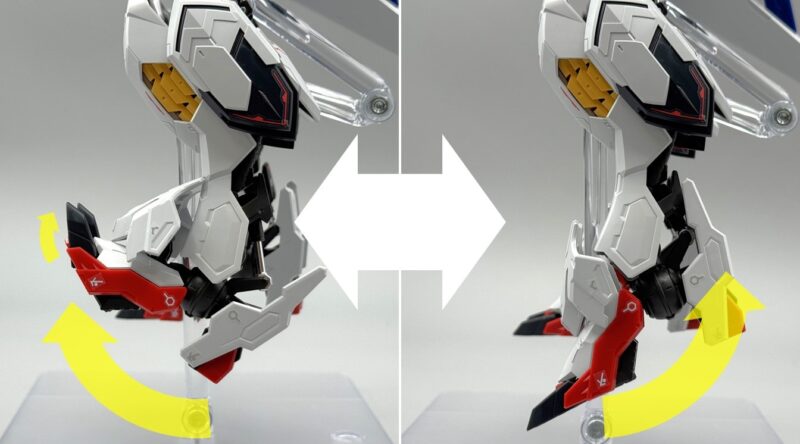 脚先とかかとの装甲は可動し、脚部の可動範囲を広げることが可能です。