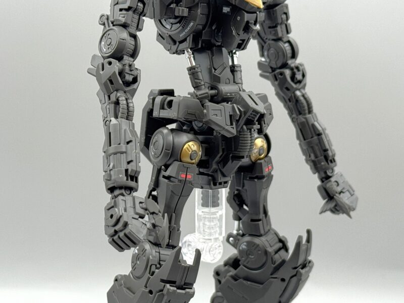 ■脚を曲げる動きに合わせた膝裏アーマーの連動可動ギミックを搭載。さらに脚先・踵アーマーが可動することで干渉を回避し、多彩なアクションが可能。