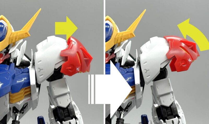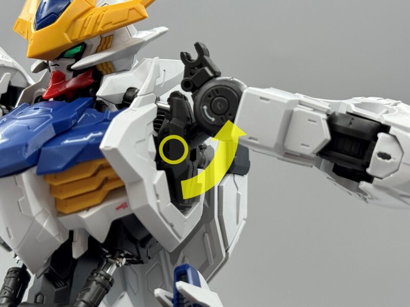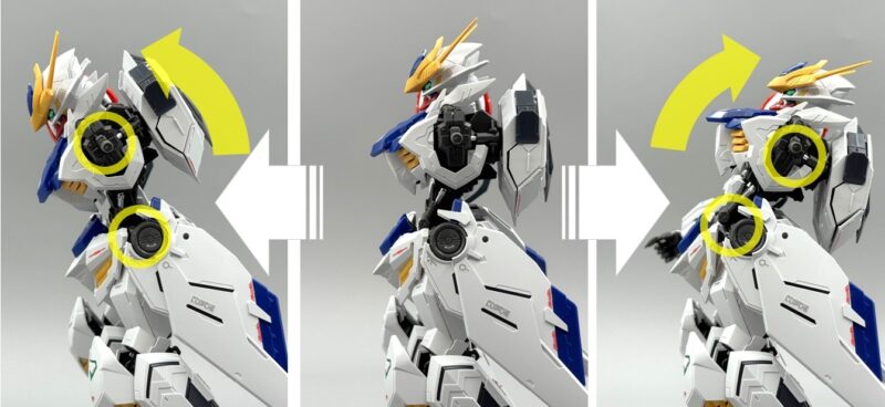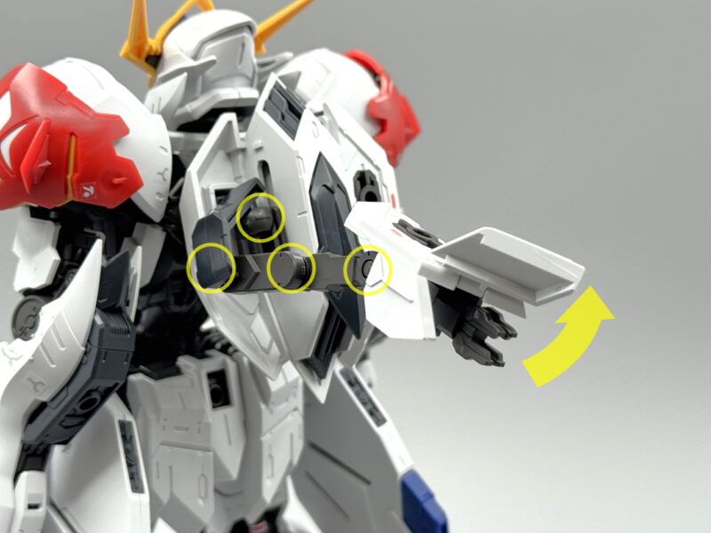 ■バックパックには可動域を妨げないスイングギミックを搭載。さらにアームは差し替えなしで展開可能。