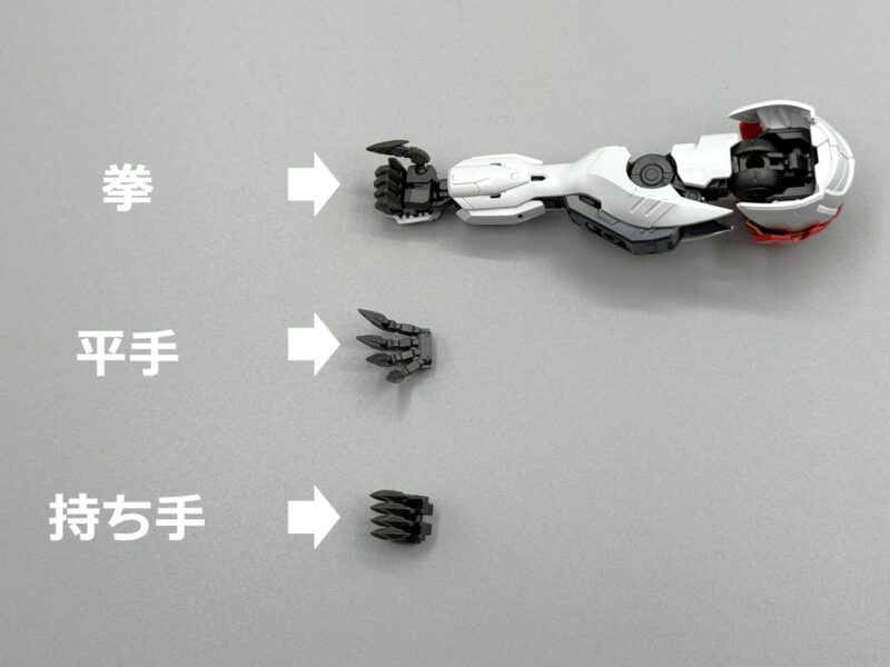 ハンドパーツは組み換え式になっており、拳、平手、持ち手に組み換えが可能です。