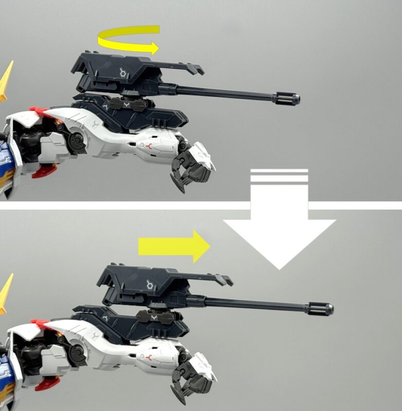■腕部200㎜砲は回転・スライド可動することで射撃形態を再現可能。