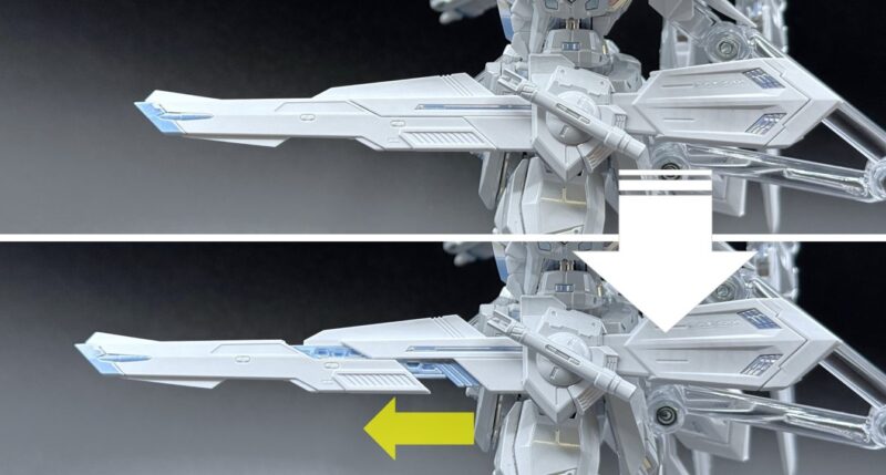 専用ジョイントを使用してバックパックの機動兵装ウイングと接続が可能です。