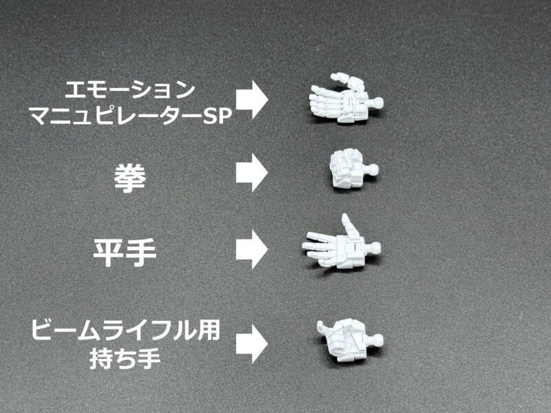 「拳」」「平手」「ビームライフル用持ち手」が付属します。