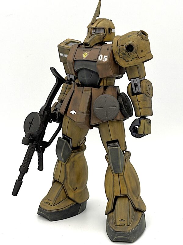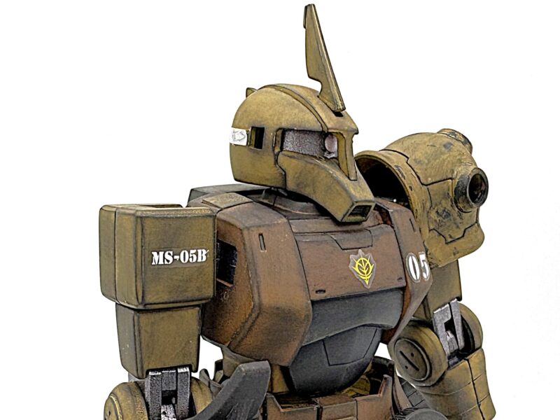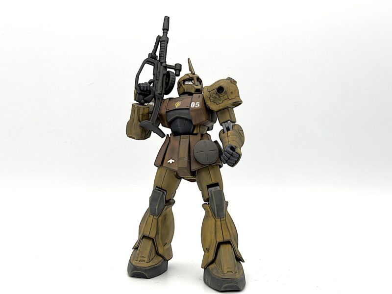 「HGUC 1/144 ザクI」をデザート系のカラーリングでウェザリングにて仕上げました。