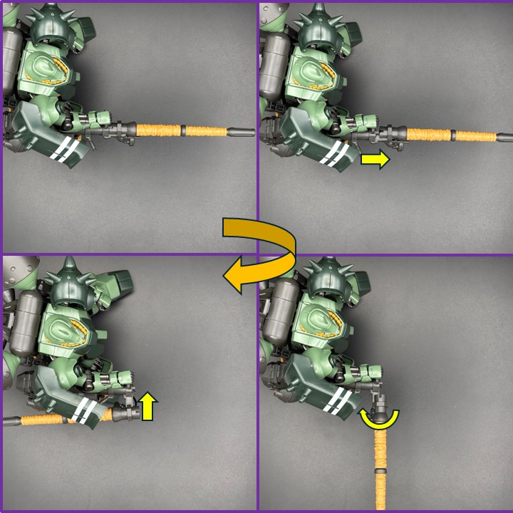砲身部はギミックにより収納状態の再現が可能、ヒンジ部分のロック機構によりしっかり固定できます!