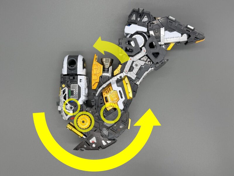 曲げた際に、ふくらはぎからバーニアがせり出る仕組みになっています。