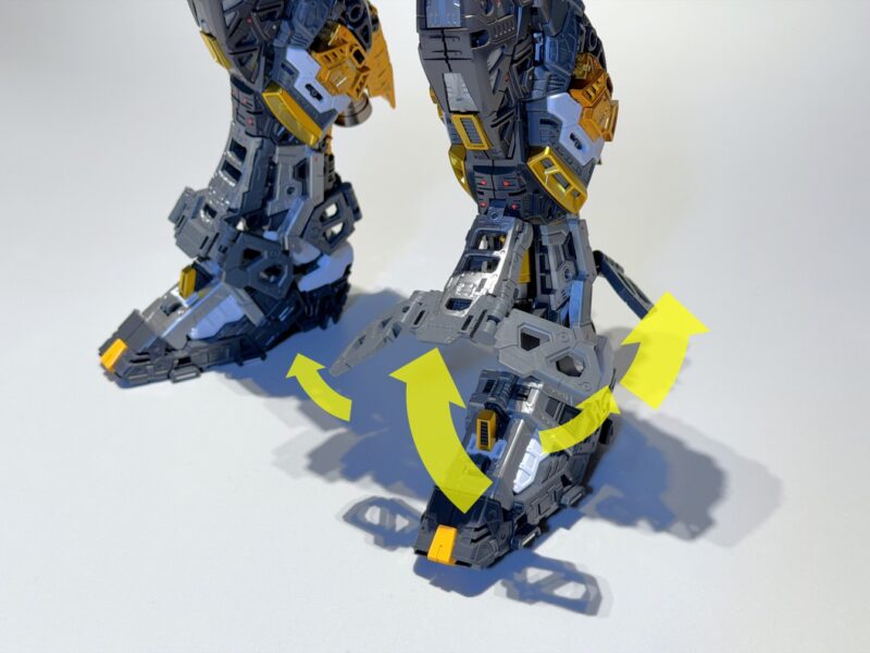 前方と側面のスカートアーマーのフレームは可動式になっており、足の可動を妨げない構造になっています。
