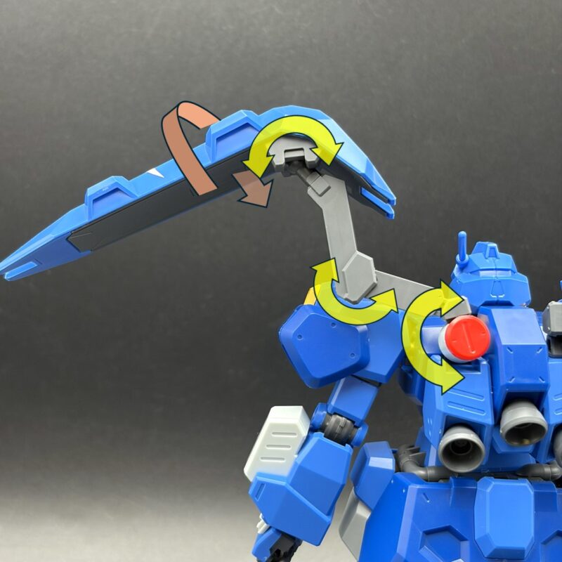 ■左肩のフレキシブル・シールドのアーム部に可動軸を搭載し様々なポージングが可能に。