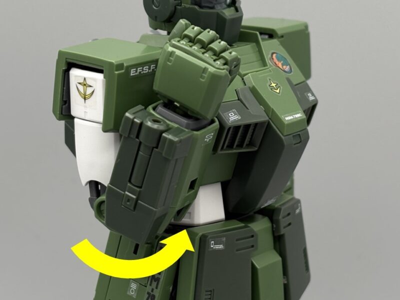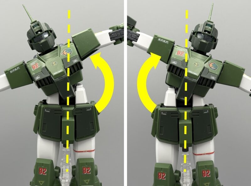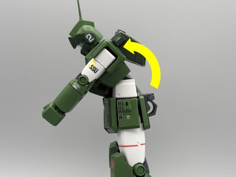 肩から腕部の広い可動域により、武器を持たせた様々なアクションが可能。