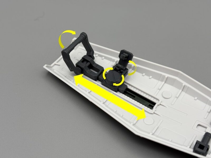 シールド裏面のマウントパーツは、”レールのスライド”、”グリップの可動”、