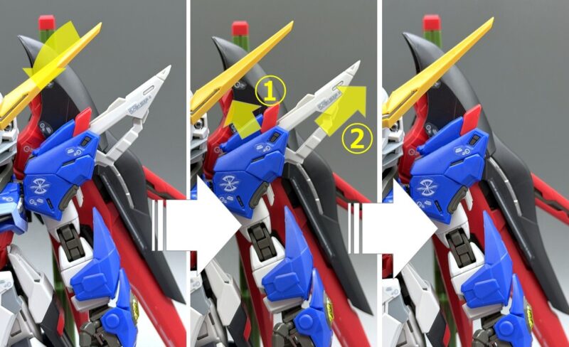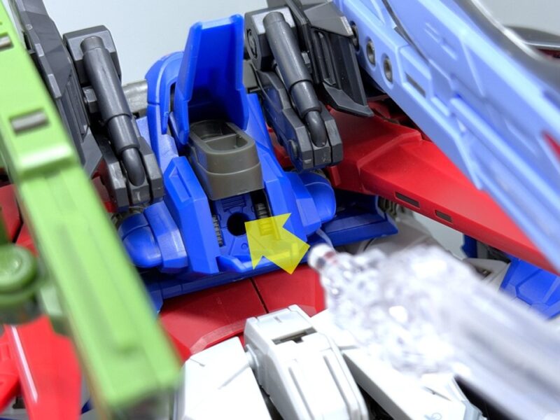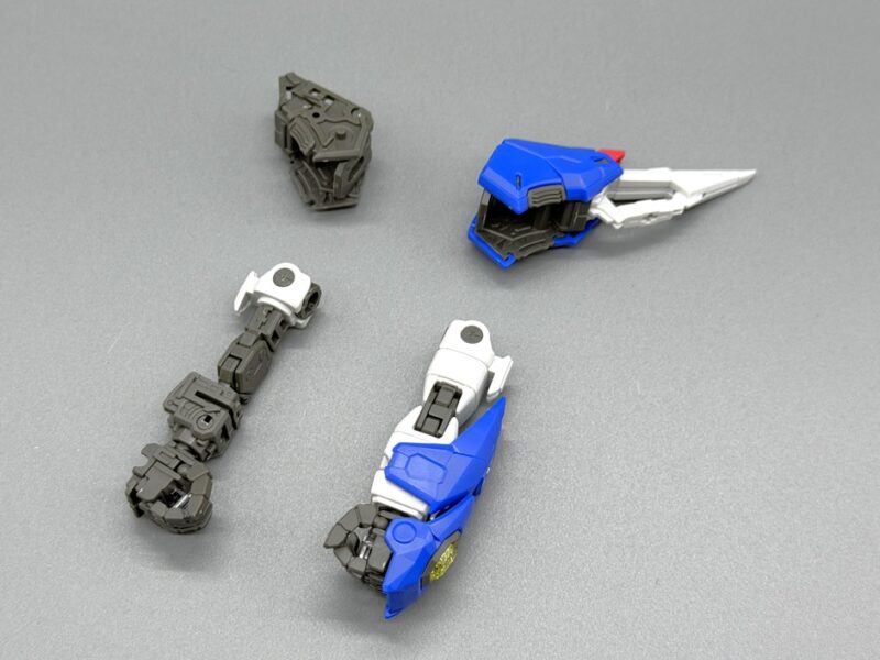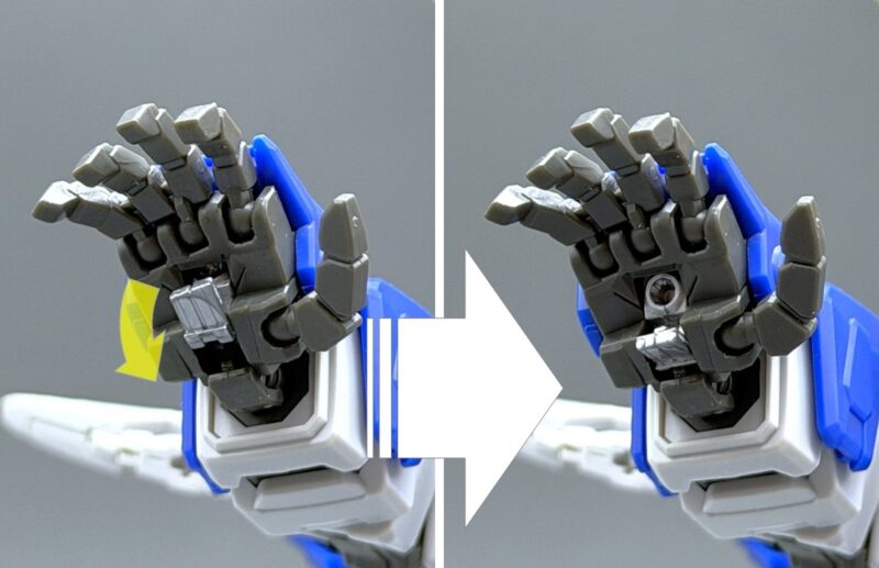 ハンドパーツを取り外し内側からビームシールド発生装置を押し出し、エフェクトパーツを接続させます。