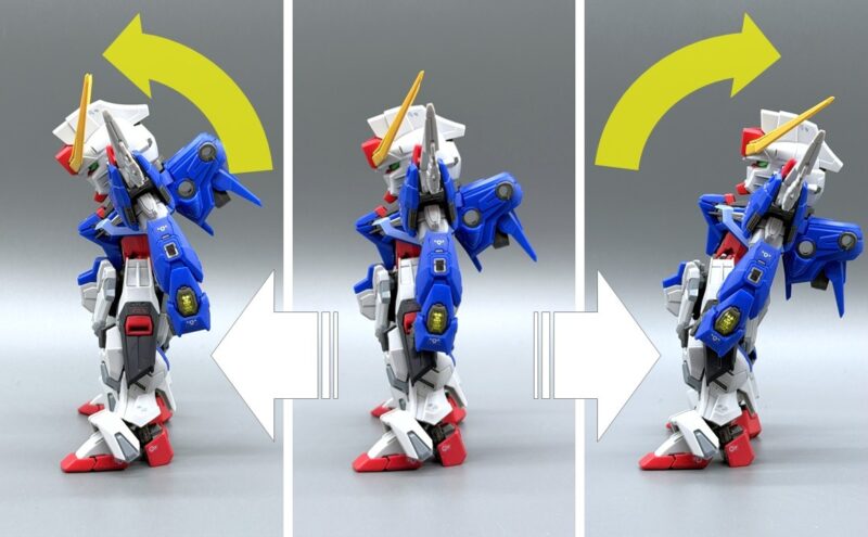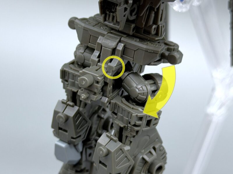 さらに腰部フロントアーマーは前方に可動し、腰部の可動を妨げない構造になっています。