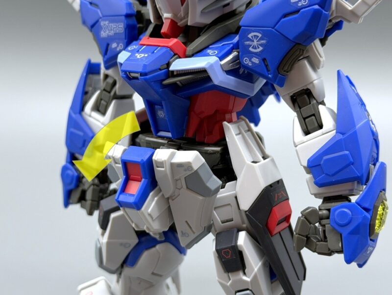 腰部サイドアーマーもフレームが可動し、脚部の可動を妨げない構造になっています。
