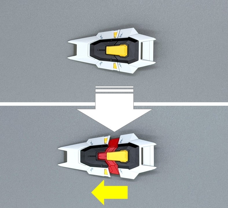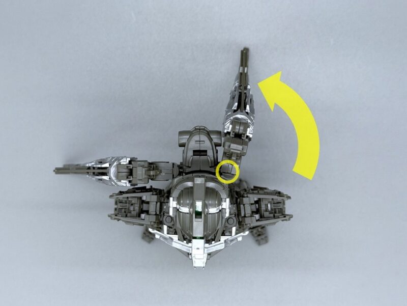 これにより、高エネルギー長射程ビーム砲も接続アームを付けたまま前方へ展開することが可能です。