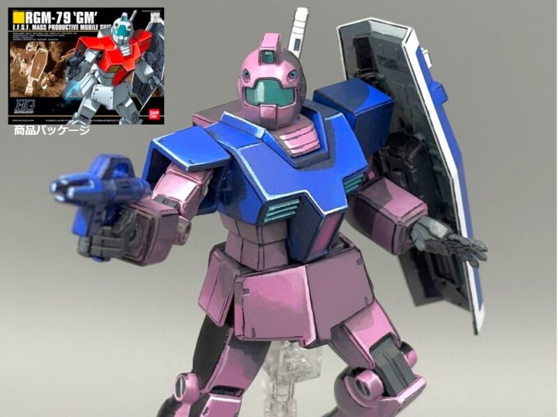 HGUC 1/144 RGM-79 ジムをパッケージイラストを参考に塗装しました。