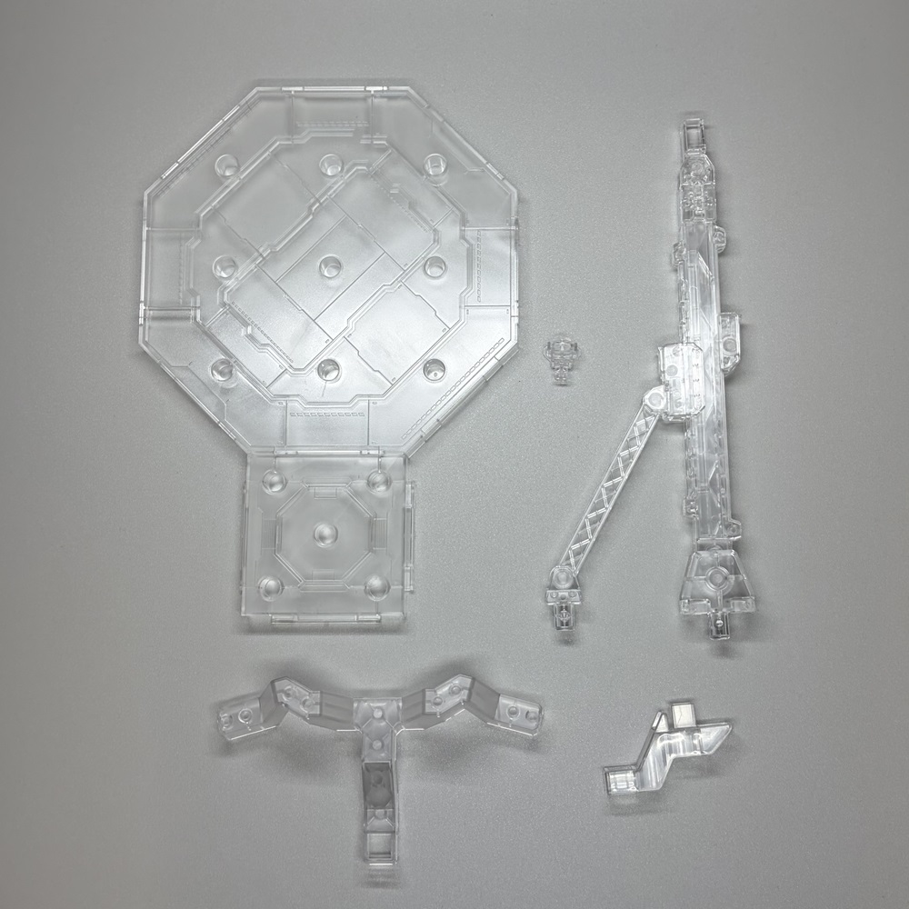 台座はクリアカラーの大きいものです。エフェクトパーツ用のジョイントパーツが付属しているのがポイントです。