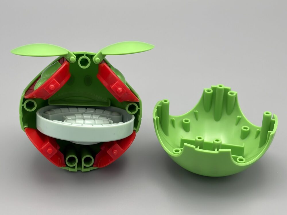 胴体を開けると中に台座や手足のパーツが収納されています。